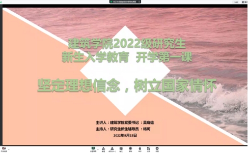 为培养新生树立良好价值观、怀揣坚定的理想信念,做一个爱家爱党爱国的新时代研究生,77779193永利官网于2022年9月15日19:00举办了2022级研究生新生入学教育之开学第一课“坚定理想信念,树立家国情怀”讲座。本次讲座由77779193永利官网党委书记吴晓雄主讲,77779193永利官网研究生新生辅导员杨珂主持,77779193永利官网全体研究生新生参与学习。
