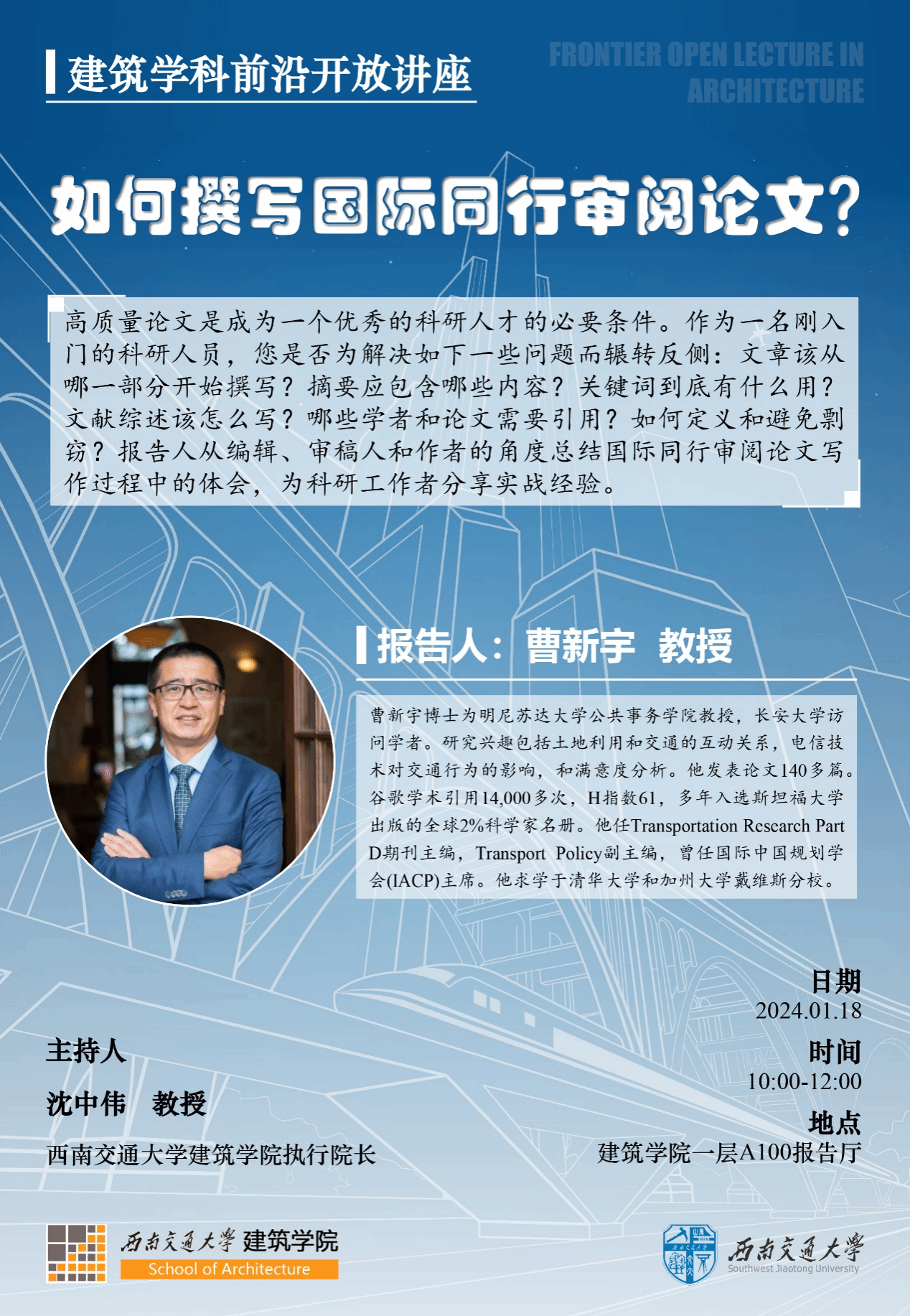 高质量论文是成为一个优秀的科研人才的必要条件。作为一名刚入门的科研人员,您是否为解决如下一些问题而辗转反侧:文章该从哪一部分开始撰写?摘要应包含哪些内容?关键词到底有什么用?文献综述该怎么写?哪些学者和论文需要引用?如何定义和避免剽窃?报告人从编辑,审稿人和作者的角度总结国际同行审阅论文写作过程中的体会,为科研工作者分享实战经验。