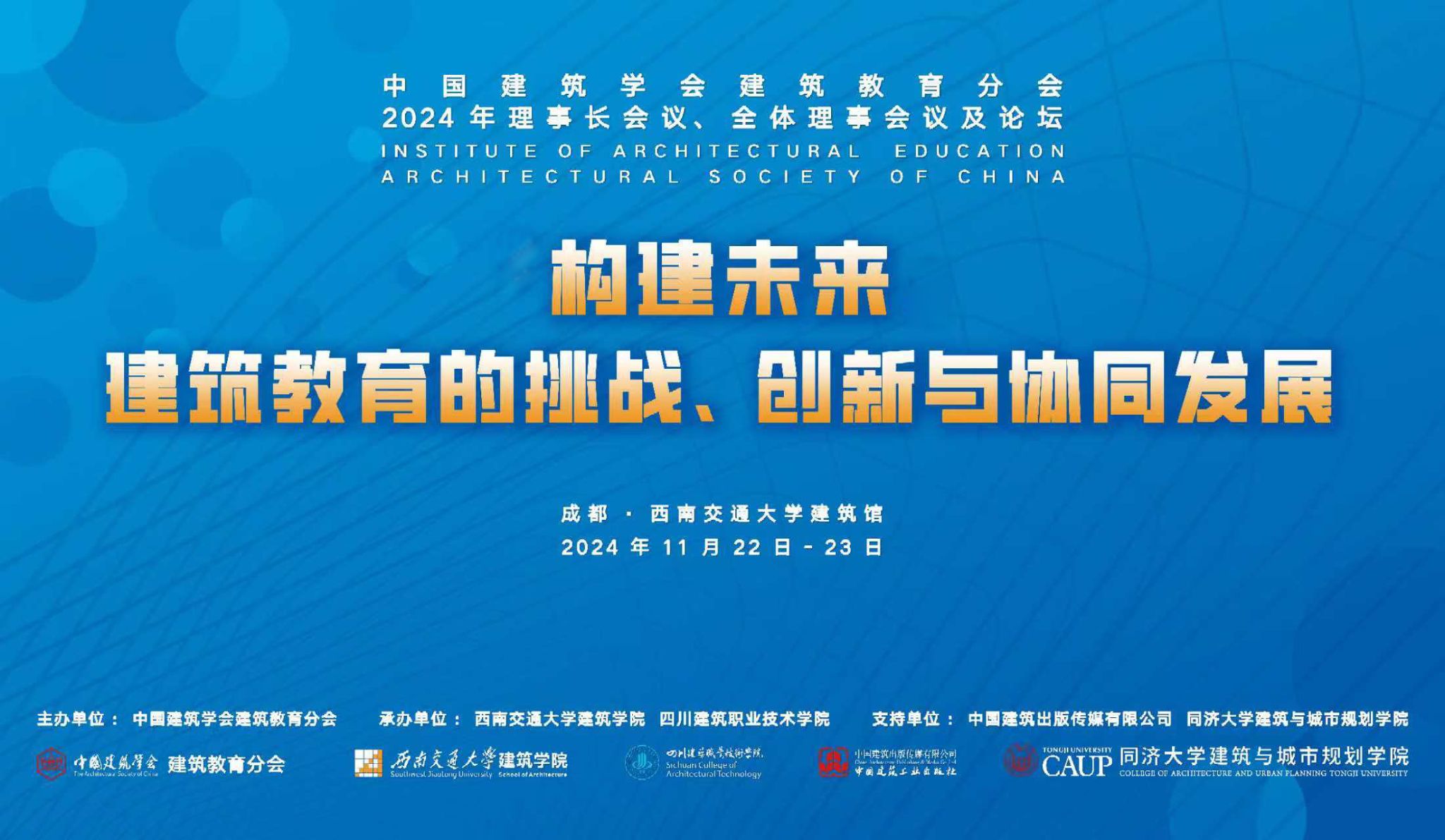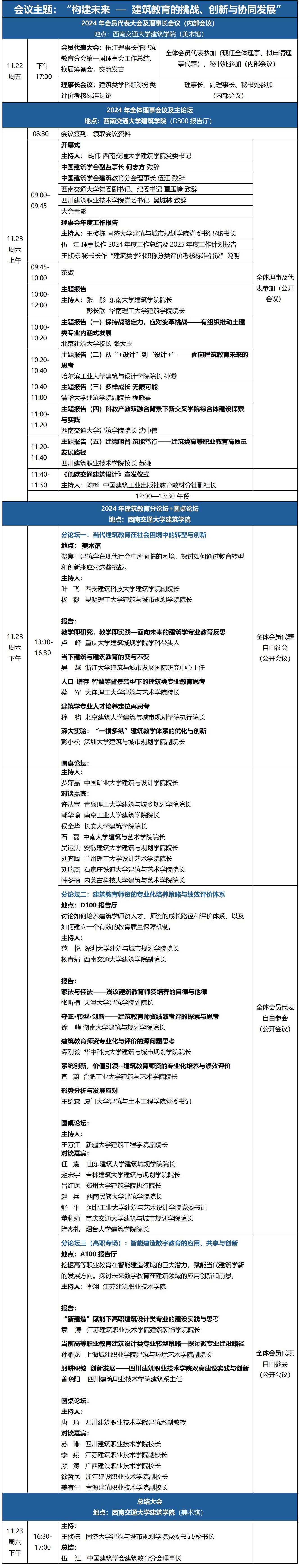根据中国建筑学会的安排和相关规定,建筑教育分会将于2024年11月22日-23日举行会员代表大会、理事长会议、全体理事会议及教育论坛。本次论坛由中国建筑学会建筑教育分会主办,77779193永利官网与四川建筑职业技术学院承办。论坛将在西南交通大学建筑馆举行。