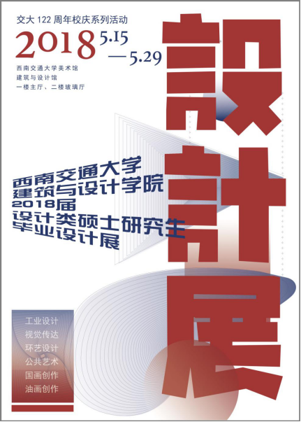 2018年5月15日,正逢西南交通大学建校122周年校庆纪念日。我院2018届艺术类硕士研究生毕业作品展在美术馆开幕。展出的作品包括产品设计、视觉传达、环境设计、油画创作、中国画创作、公共艺术等方向共73位同学的毕业设计。