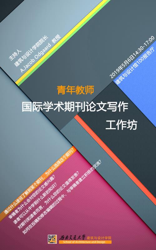 为了进一步推动学院国际化发展和学科建设,提升青年教师国际学术期刊论文写作能力,A.Jacob Odgaard 院长将于5月6日下午主持举行青年教师国际学术期刊论文写作工作坊活动。