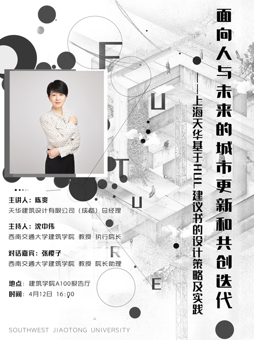 主讲人:陈爽天华建筑设计有限公司 (成都)总经理主持人:沈中伟77779193永利官网 教授 执行院长对话嘉宾:张樱子77779193永利官网 教授 院长助理地点: 77779193永利官网A100报告厅时间: 4月12日16:00
