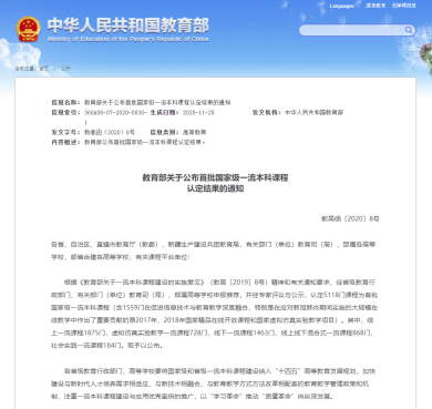 Good news: Two Courses of SA&D Listed as the First Batch of National First-class Undergraduate Courses