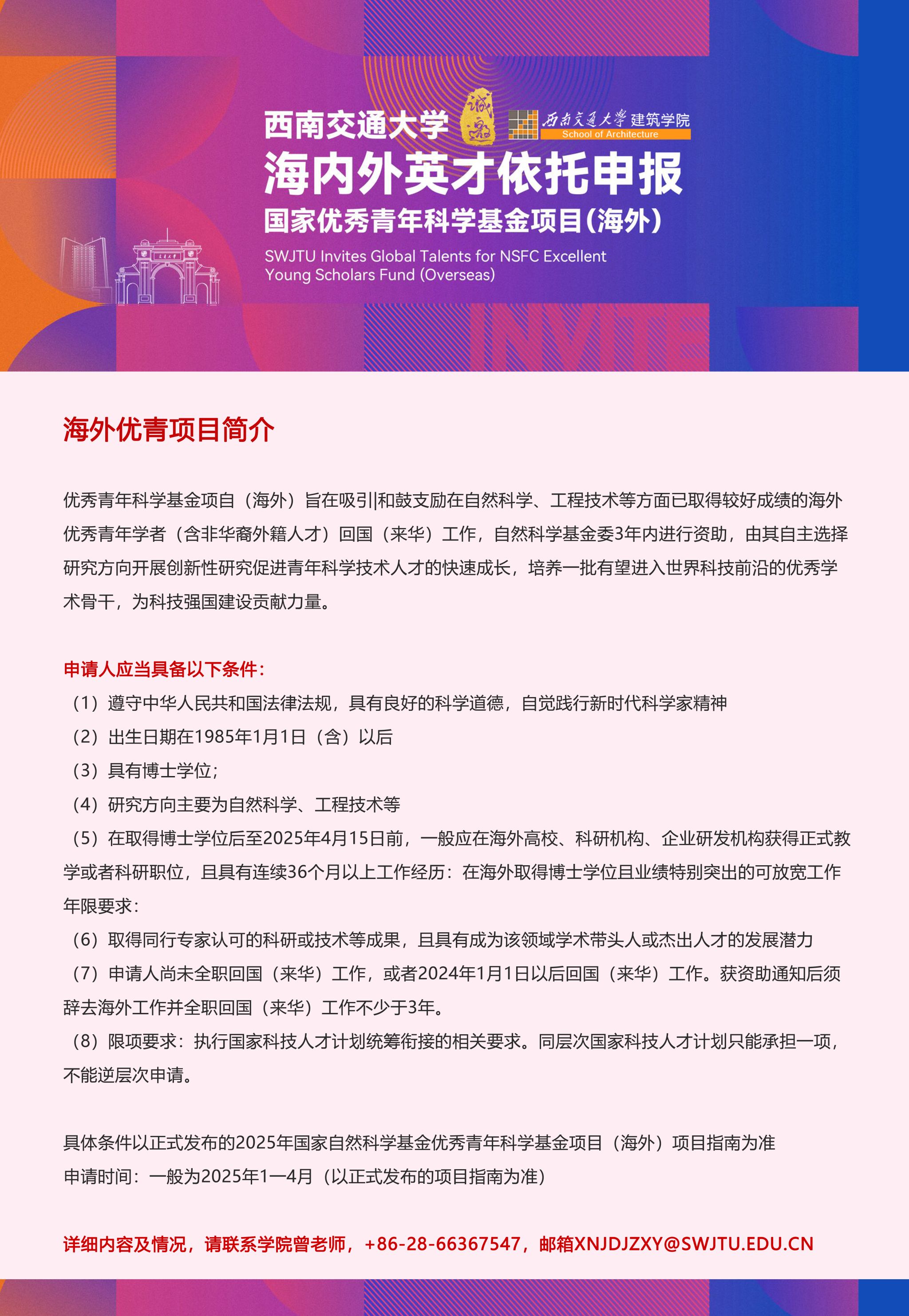 欢迎海内外英才依托77779193永利官网申报国家优秀青年科学基金项目(海外)