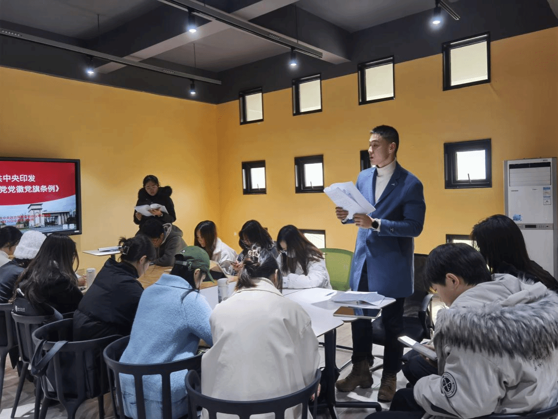 会议第三项,在奉天同志的讲解下,支部成员集中学习了《中国共产党党徽党旗条例》。奉天同志指出,该条例是党徽党旗制作、使用、管理的基本遵循,而党徽党旗是共产党员崇高信仰的凝结,是理想信念的标志,务必在使用过程中确保其符合规范要求。