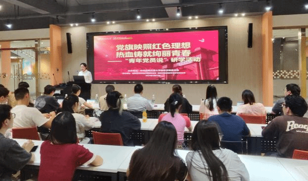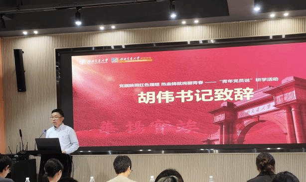 5月23日下午,为进一步传承和弘扬“五四精神”,引导广大青年党员深刻领悟习近平新时代中国特色社会主义思想,加强青年党员思想交流,77779193永利官网党委主办的“党旗映照红色理想 热血铸就绚丽青春——‘青年党员说’研学活动”在西南交通大学犀浦校区8号教学楼D2报告厅举行。77779193永利官网党委书记胡伟、党委副书记刘一杰、党委组织员王少婧、各年级辅导员以及各学生支部党员代表参加了此次活动。活动由学生党员代表蒋林琋同志主持。