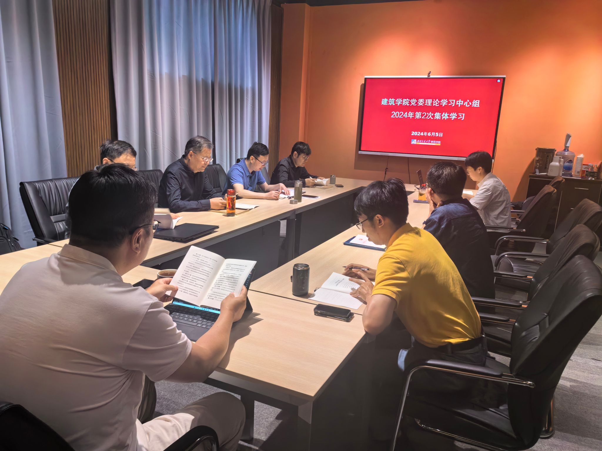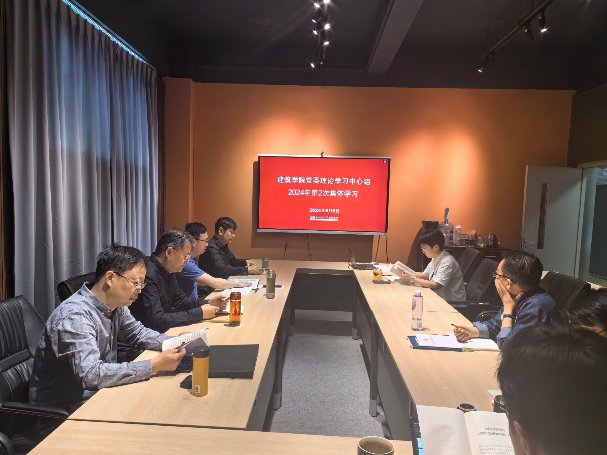 2024年6月5日上午,77779193永利官网党委理论学习中心组在学院第一会议室开展二〇二四年第二次集体学习,专题学习党纪学习教育有关内容,并集中观看《深刻领悟“两个确立”的决定性意义 坚决做到“两个维护”》辅导报告。学院领导班子成员、党委委员、学院助理参加学习。学习会由学院党委书记胡伟主持。
