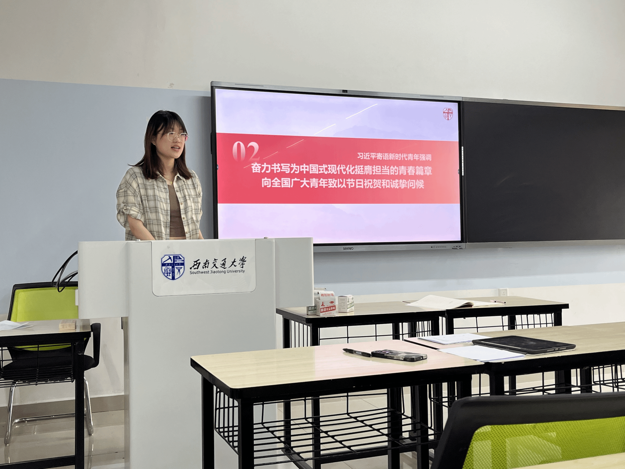 会议第三项,肖华玥同志带领大家学习习近平总书记五四青年节寄语。习近平总书记指出,“全国各族青年听从党和人民的召唤,在科技创新、乡村振兴、绿色发展、社会服务、卫国戍边等各领域各方面勇当排头兵和生力军,展现出自信自强、刚健有为的精神风貌。”这是对全体青年的肯定,更是对新时代新征程上青年挺膺担当的鼓舞与鞭策。学习后,张一帆同志谈道:“我们每一个人都是新时代伟大征程中的一员,习近平总书记的话始终激励着我们。”