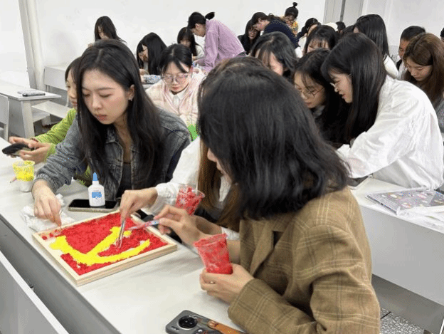 本次活动内容共三项。活动伊始,侯胜兰同志带领支部成员集中回顾了新中国成立75周年的根本成就,并学习了习近平总书记在全国民族团结进步表彰大会上的讲话。她强调,支部成员应以英雄模范为榜样,团结奋进、砥砺前行,以实际行动践行初心使命,为民族复兴伟业奉献力量。随后,为筑牢支部成员的党史知识,切身领悟新中国成立以来的光辉历程,支部以建党以来的30项重要历史事件作为竞赛的题目,开展了一场以“党史事件排序”为主要内容的趣味知识竞赛,支部成员纷纷展现出了扎实的理论功底。紧接着,支部进行了“共绘红色纸浆画”的彩绘活动,通过分组绘制红色纸浆画勾勒对新时代的热切期许与共同愿景。活动过程气氛热烈,支部成员用绚烂的色彩表达了自己对党和祖国的诚挚祝福。