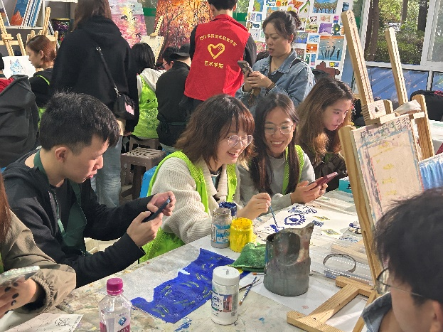 活动第二天,同志们在犀浦校区二食堂前进行校园义卖活动,活动现场暖意浓浓,吸引了大量师生参与,支部的同志们为前来的师生提供了热情周到的讲解与服务,让大家了解每一件手工艺品背后的故事和制作者的心意。此次义卖活动的顺利开展,为残障人士点亮了希望之光,让他们感受到了社会的温暖与关爱活动。所得到的义卖善款全部返还给机构,用于支持残障人士的生活和职业发展。