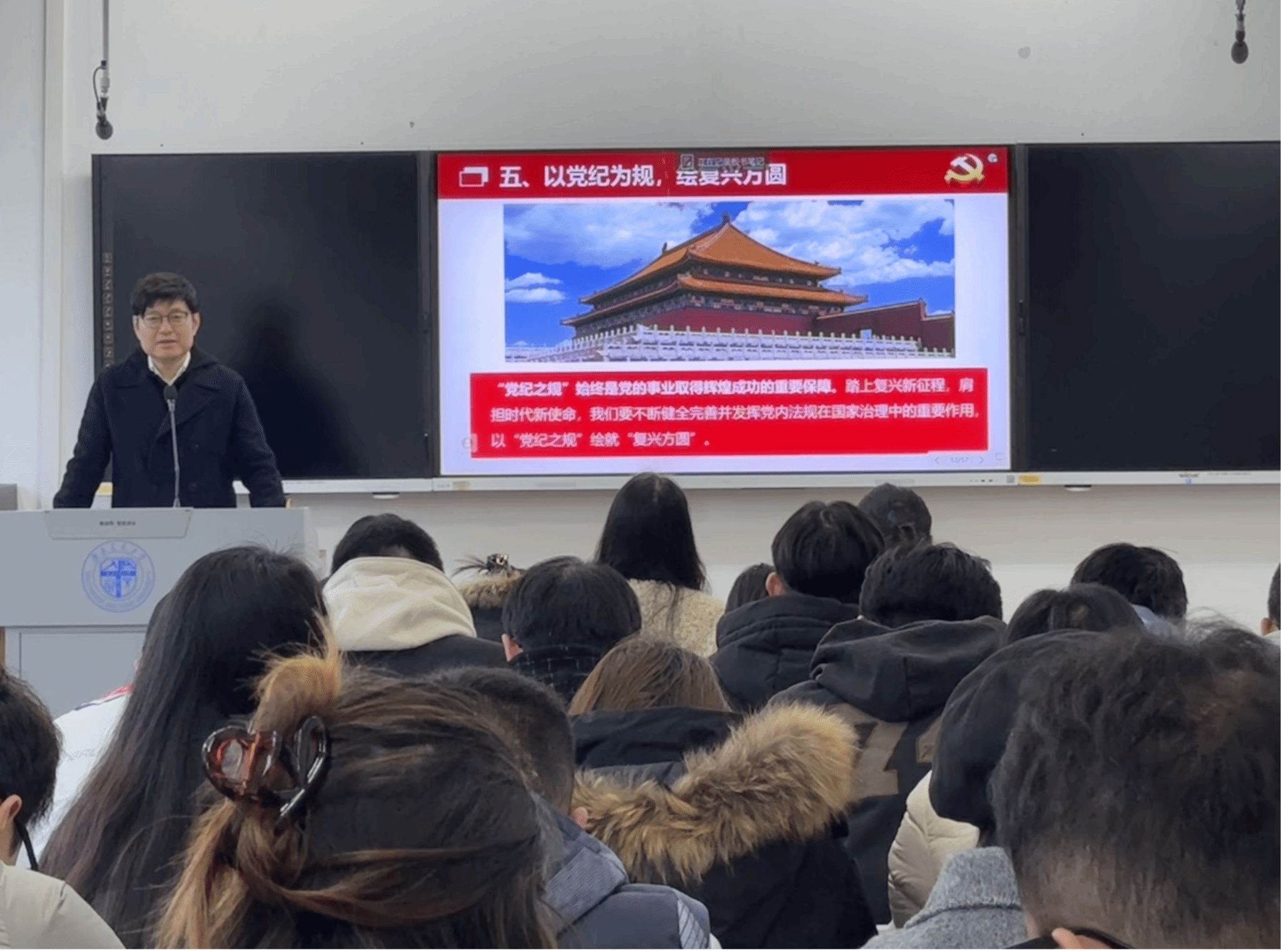 2024年12月12日16:30,为深入学习贯彻习近平新时代中国特色社会主义思想、党的二十届三中全会精神以及《关于在全党开展党纪学习教育的通知》的学习,进一步加强党的纪律建设、推动全面从严治党向纵深发展,学院党委委员崔叙同志以“学党纪 强党性 促发展 谋复兴”为主题,在77779193永利官网X8321面向城乡规划系党支部、研城乡规划党支部以及研城乡规划第二党支部全体成员讲授党纪学习教育专题党课。