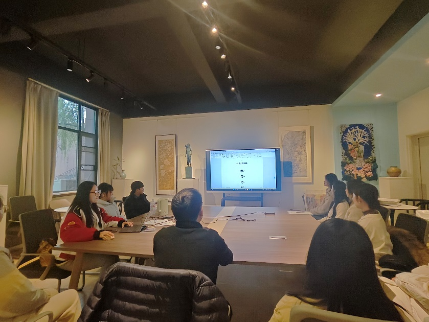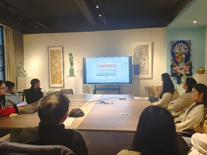 第一部分,刘春尧同志带领支部成员持续跟进习近平总书记近期重要讲话、指示、复信、贺信精神,深入学习贯彻习近平新时代中国特色社会主义思想。蔺玉同志发言:支部同志作为艺术工作者,要扎根于中华优秀传统文化,秉持着开放包容的态度不断学习,创作出优秀的艺术作品。