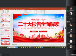 为加深党员们对我国取得的历史性成就和发生的历史性变革的了解,12月19日,支部于线上开展了《献礼二十大,奋进新征程》主题分享会。根据党员们的学科特长,以“十年成果人人讲”为分享主题,鼓励大家采用PPT图文排版的形式分享过去十年国家总体或某方面取得的非凡成就。党员们积极参与,有的从衣食住行察生活之变、有的结合专业兴趣赞美乡村振兴、还有的用生动范例展望生态文明建设……党员同志们以自己的方式抒发对党和祖国的真挚情感。
