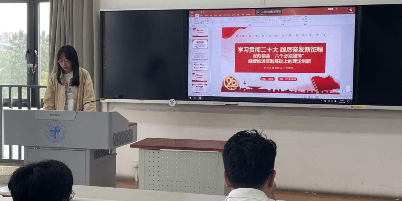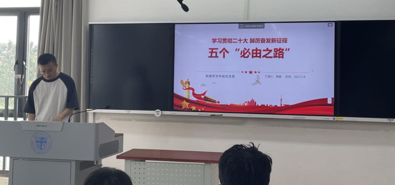 习近平新时代中国特色社会主义思想是内涵丰富、系统完备、逻辑严密的思想体系,蕴含着鲜明的立场观点方法,为我们奋进新征程、建功新时代提供了强大的思想武器。2023年5月4日下午16时至17时30分,西南交通大学研建筑学专硕党支部深入开展学习贯彻习近平新时代中国特色社会主义思想主题教育。本次主题教育的具体内容分为学习习近平总书记《在学习贯彻习近平新时代中国特色社会主义思想主题教育工作会议上的讲话》、二十大知识分享、以及支部交流学习体会三项主要内容。支部党员和积极分子参加了本次会议,本次会议由党支部书记黄越同志主持。