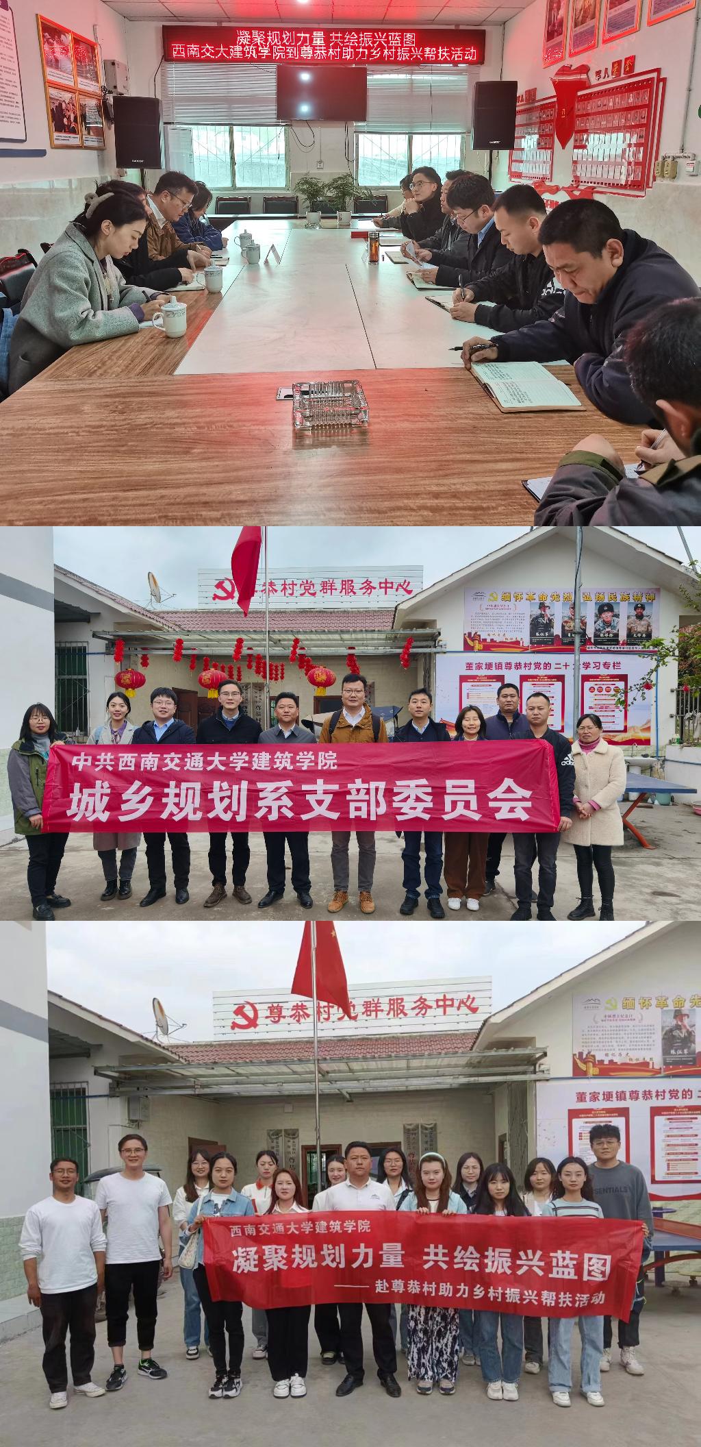 3月23日,为发展壮大尊恭村特色产业,改善和优化尊恭人居环境和公共空间,尊恭驻村选调生李渊邀请母校西南交通大学于洋教授、方翰老师及研究生党支部书记代表赴村开展调研及结对帮扶活动。尊恭村党总支书记袁世超等带领77779193永利官网代表进行调研,重点探讨尊恭村村集体经济产业的发展基础、引智优势、存在痛点及破局思路。