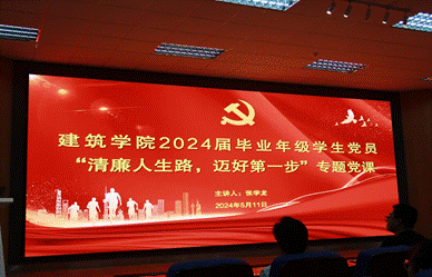 2024年5月11日下午,为深入推进党纪学习教育,筑牢党员的初心与使命,教育引导大学生打好人生底色,在成长拨穗期扣好廉洁自律的“第一扣”,在成长黄金期系好廉洁自律的“安全带”,77779193永利官网党委邀请学校党委副书记、纪委书记张学龙为学院2024届毕业生党员讲授“清廉人生路,迈好第一步”廉洁教育专题党课。学院党委副书记、纪委书记刘一杰,学生工作组全体辅导员及毕业生党员、研建筑学党支部全体党员和其他党员、入党积极分子代表参加了党课学习。党课由学院党委书记胡伟主持。